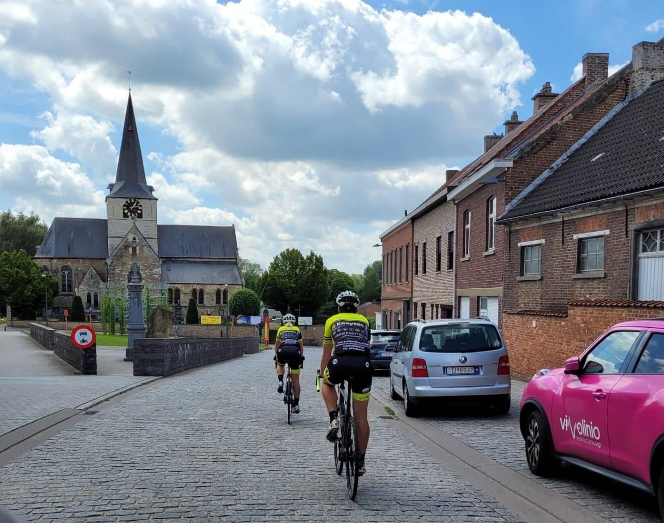 Via het doolhof onder de brug aan den Tragel in Aalst gaat het via Moorsel richting Affligemdreef. Nog één keer afzien en we kunnen ons neder vleien op het terras bij Ingrid. Als een echte undercover agent die al enkele dagen in zijn wagen had doorgebracht, werden we in Meldert op de kat, in de gaten gehouden door Kurt.