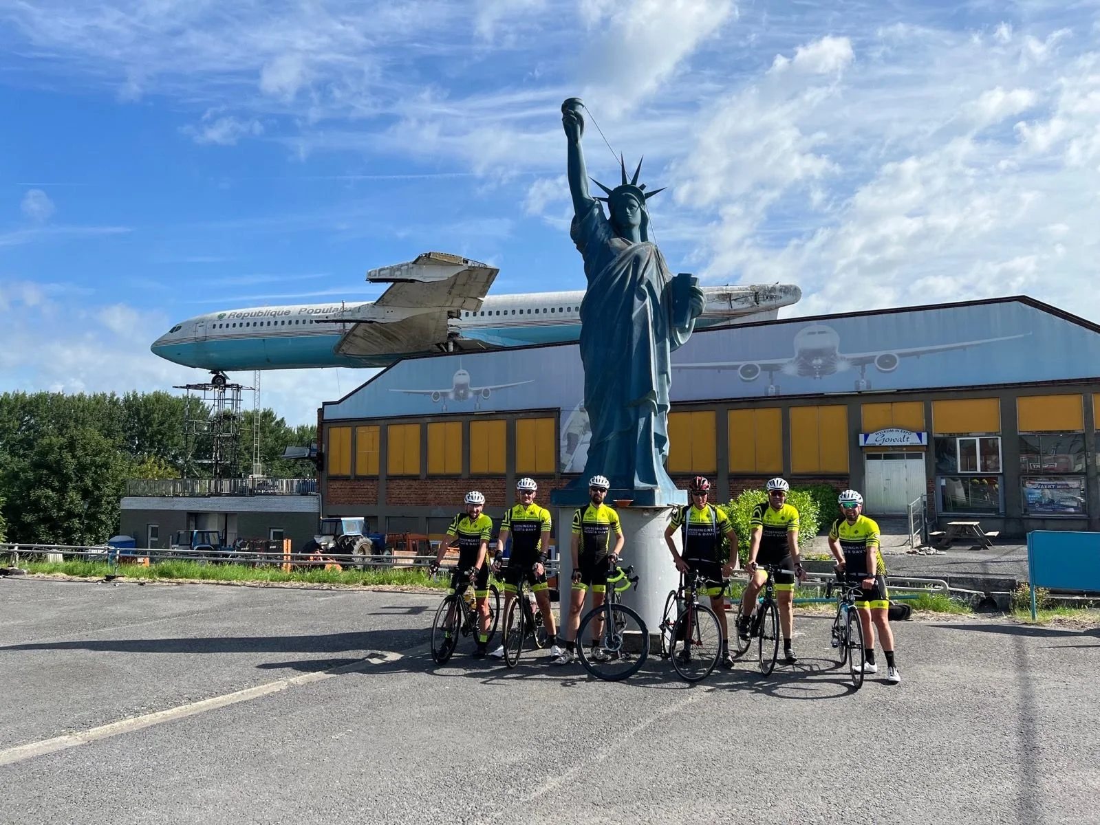 Via kleine kronkelende wegen gaat het via Serskamp richting Overbeke en iedereen onder ons weet dat we dan niet ver verwijderd zijn van de vlieger. Wanneer we dan opdraaien naar de Kwatrechtsteenweg, zie je hem al hoog boven het straatbeeld opdoemen. Iedereen behalve Sven, die deze rit voor de eerste keer rijdt, heeft dit ijzeren gedrocht gezien. Laagvliegers hebben blijkbaar geen oog voor hoogvliegers.