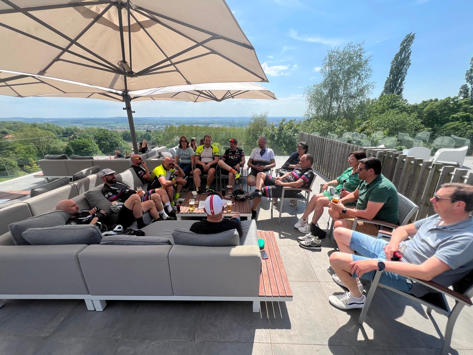 Nog enkele korte hellinkjes, dan een stuk bergaf en voor de laatste keer de klim naar het hotel, en het zat erop. Nog even werd er nagenoten en nagekaart op het terras with a view, waarna de fietsen werden ingeladen samen met de achtergebleven echtgenotes en dan zat het er echt wel op.